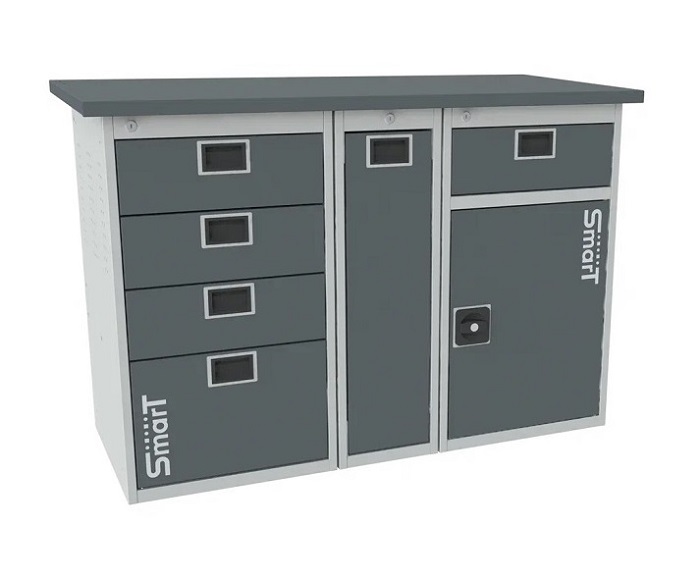 Дополнительно на верстак можно установить: перфорированный экран SMART 1280 мм, комплект освещения SMART, аксессуары на экран SMART, возможна установка системы мастер ключ.