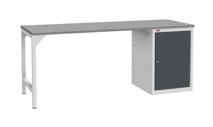 Цвет верстака: серый Ral 7038, лицевая панель ящиков/дверей антрацит Ral 7016. Тип покрытия: эпоксидная порошковая краска. Поставляется в разобранном виде