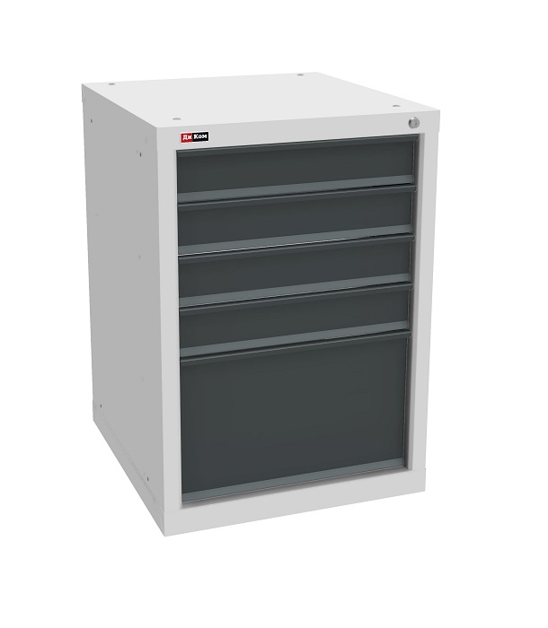 Столешница выполнена из фанеры (24 мм) с покрытием из оцинкованного листа металла. Тумба ВЛ-К-015 комплектуется 5 выдвижными ящиками с телескопическими направляющими. Полезный размер ящиков (ВхШхГ): 1-280х459х459 мм, 4-80х459х459 мм. Тумба закрывается центральным ключевым замком (50 000 циклов). Перфорированный экран предназначен для размещения навесных аксессуаров. В комплекте экрана: два экрана, комплект упоров, две стойки, перекладина-направляющая 200. Размер квадратной перфорации 10х10 мм, шаг установки аксессуаров 35 мм