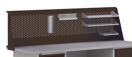 Перфорированный экран Э-1,4В черный - дополнительный экран длиной 1390 мм (ВП-2/1,4, ВП-3/1,4). Устанавливается сверху на экран Э-1,4. Изготовлен из металла толщиной 1,2 мм. Экран имеет круглую перфорации диаметром 7 мм. Дополнительно на экран можно удлиненную полку, укороченную полку, держатель инструментов, держатель ключей, крючки длиной 80 и 50 мм. Цвет: черный муар Ral 7021. Тип покрытия: порошковое.