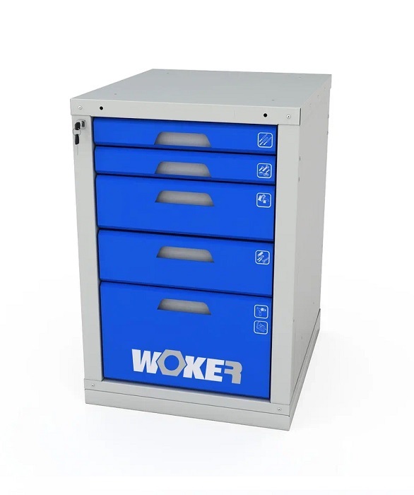 В комплектацию верстака входит: столешница Woker 1800, две тумбы Woker 05, полка/стенка Woker. Столешница выполнена из шлифованной березовой многослойной фанеры толщиной 30 мм. Снаружи фанера обработана влагостойким антисептиком цвета "красное дерево", что придает фанере повышенную влагостойкость и более темный цвет. Тумба Woker 05 комплектуется 5 выдвижными ящиками (2 высотой - 135 мм, 2 высотой - 65 мм и 1 высотой - 275 мм). Полезный размер ящика: (ШхГ) 459х612 мм. В ящиках есть противоскользящие коврики и набор наклеек с пиктограммами для маркировки содержимого. Полка/стенка верстака выполнена из стального листа толщиной 1 мм.